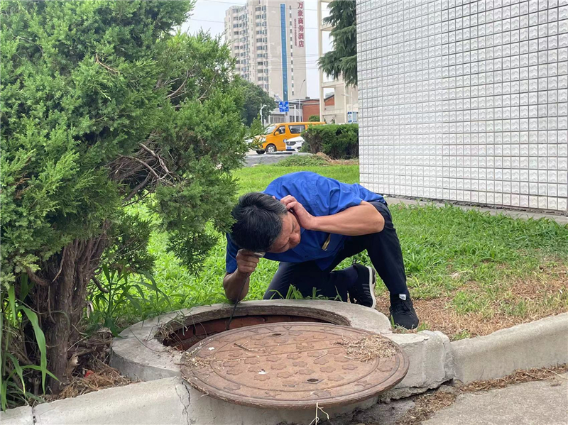 經(jīng)現(xiàn)場查看,測漏人員只能對已知閥門、雨水井逐一進(jìn)行排查。只見他們掀開井蓋,將聽音桿的底部抵在閥門井里的管道上,側(cè)耳俯身,持續(xù)傾聽有沒有刺耳的漏水聲音,在炎熱的天氣下專心聽漏,經(jīng)過認(rèn)真細(xì)致劃分區(qū)域節(jié)點,反復(fù)地聽音、定點,當(dāng)排查至水表井附近時,看到水表井里的積水當(dāng)即安排抽水,工作人員彎身爬到水表井下深入細(xì)聽,最終在DN300水泥管找到漏點,定好位做出標(biāo)記,立即安排搶修人員組織搶修,經(jīng)過挖掘、清理、焊接、維修、通水。城市供水公司持續(xù)開展“免費聽漏測漏”活動,堅持問題導(dǎo)向,立足企業(yè)需求,全心全意解企憂、解企難,幫助有需要的企業(yè)用戶查找漏點,便于及時堵漏,節(jié)約水資源。