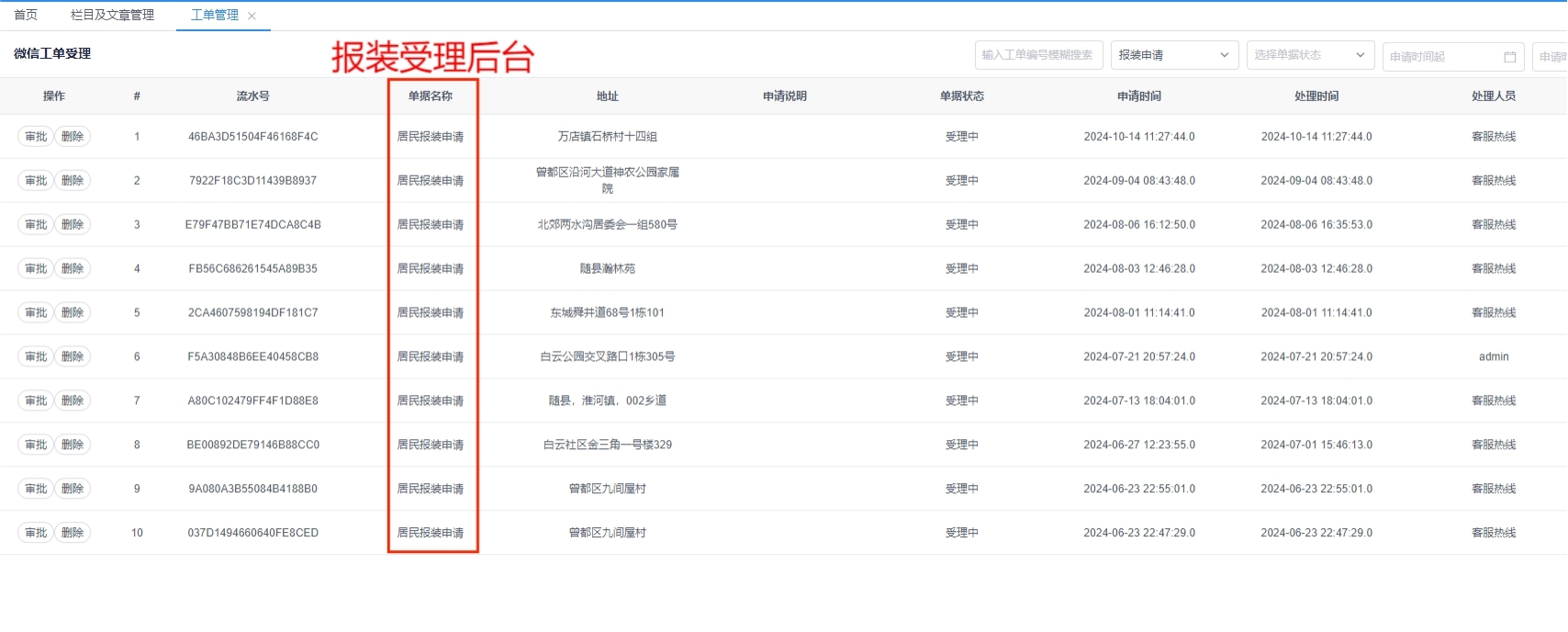 1)水務集團服務后臺操作截圖