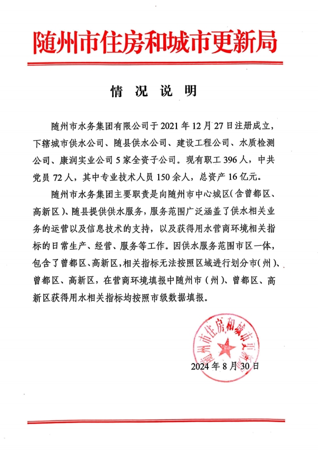 隨州市水務(wù)集團基本情況說明