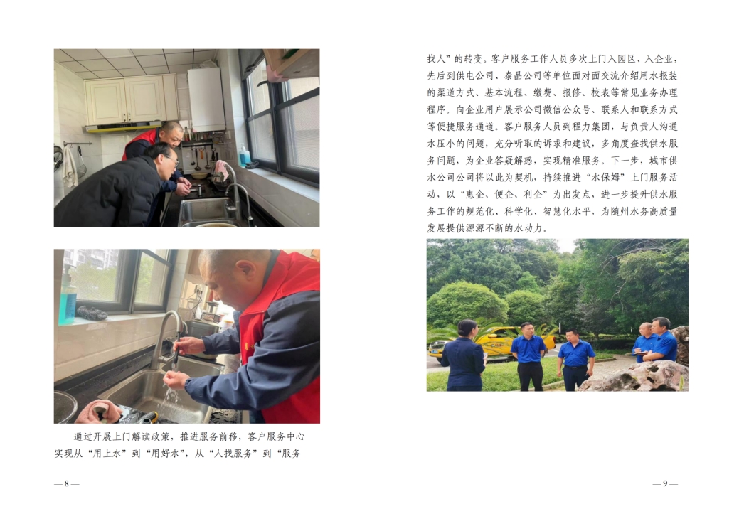 為全面提升供水服務(wù)水平,優(yōu)化供水營商環(huán)境,隨州水務(wù)集團(tuán)推出“水保姆”供水服務(wù)新模式,建立“供水服務(wù)網(wǎng)格員”隊(duì)伍,通過開展清表核查、網(wǎng)格劃分、聯(lián)合社區(qū)共同解決用戶問題等亮點(diǎn)行動(dòng),讓百姓暖心,讓企業(yè)放心。