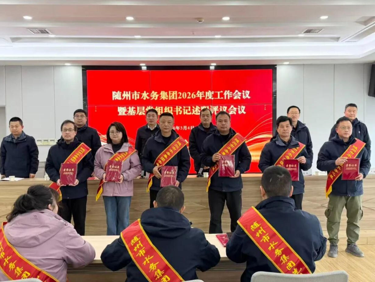 3月2日,隨州水務(wù)集團召開2026年工作會議暨基層黨組織書記述職評議會議。會議深入學習貫徹上級精神,全面總結(jié)2025年工作,表彰先進典型,系統(tǒng)部署2026年重點任務(wù),動員全體干部職工實干篤行、奮勇爭先,奮力開創(chuàng)集團高質(zhì)量發(fā)展新局面。集團黨總支書記、董事長桂維國出席會議并講話,集團黨總支副書記、總經(jīng)理嚴賢江主持會議。